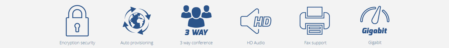 TCP/IP/UDP, RTP/RTCP, HTTP/HTTPS, ARP/RARP, ICMP, DNS, DHCP, NTP, TFTP, SSH, STUN, SIP (RFC3261), SIP over TCP/TLS, SRTP, TR-069 |
