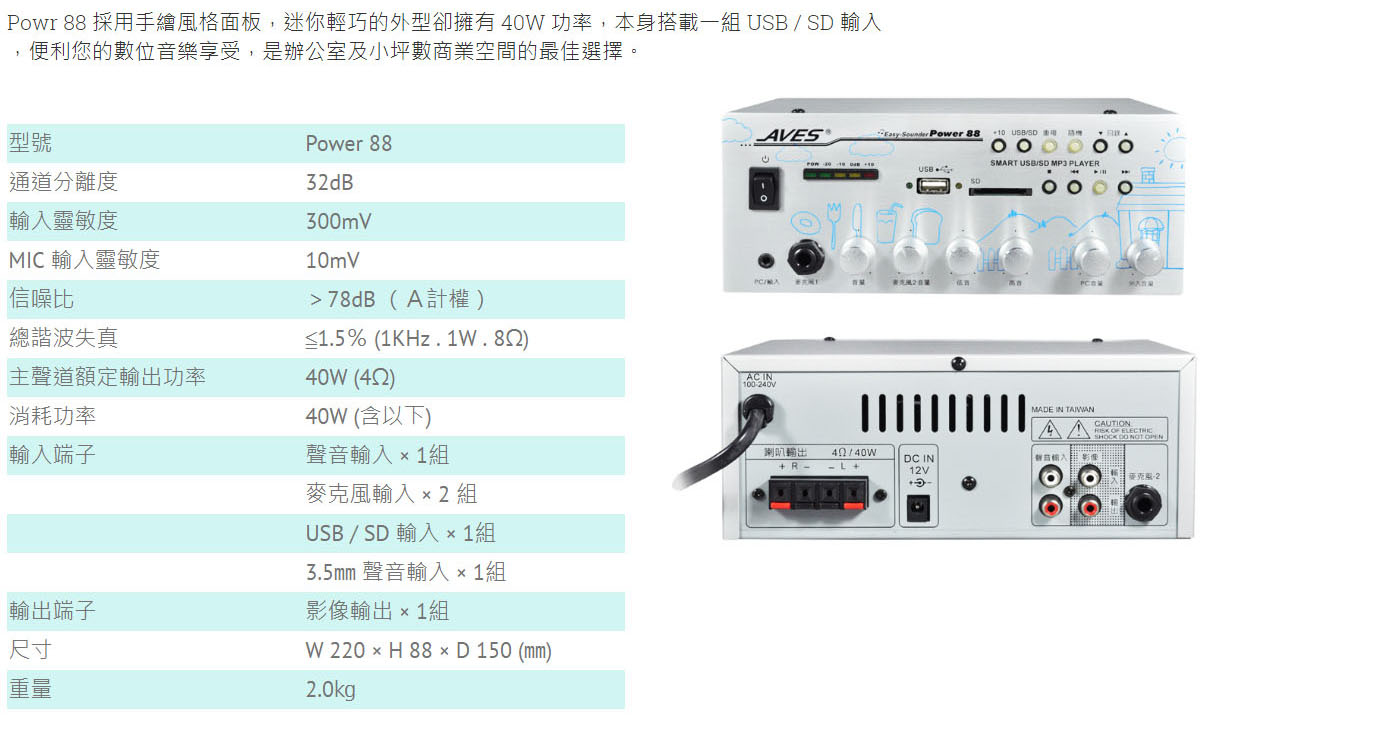 AVES USB & SD 迷你擴大機 Power 88