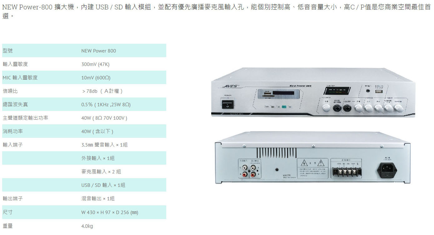 AVES 高壓 USB & SD 擴大機 NEW Power 800