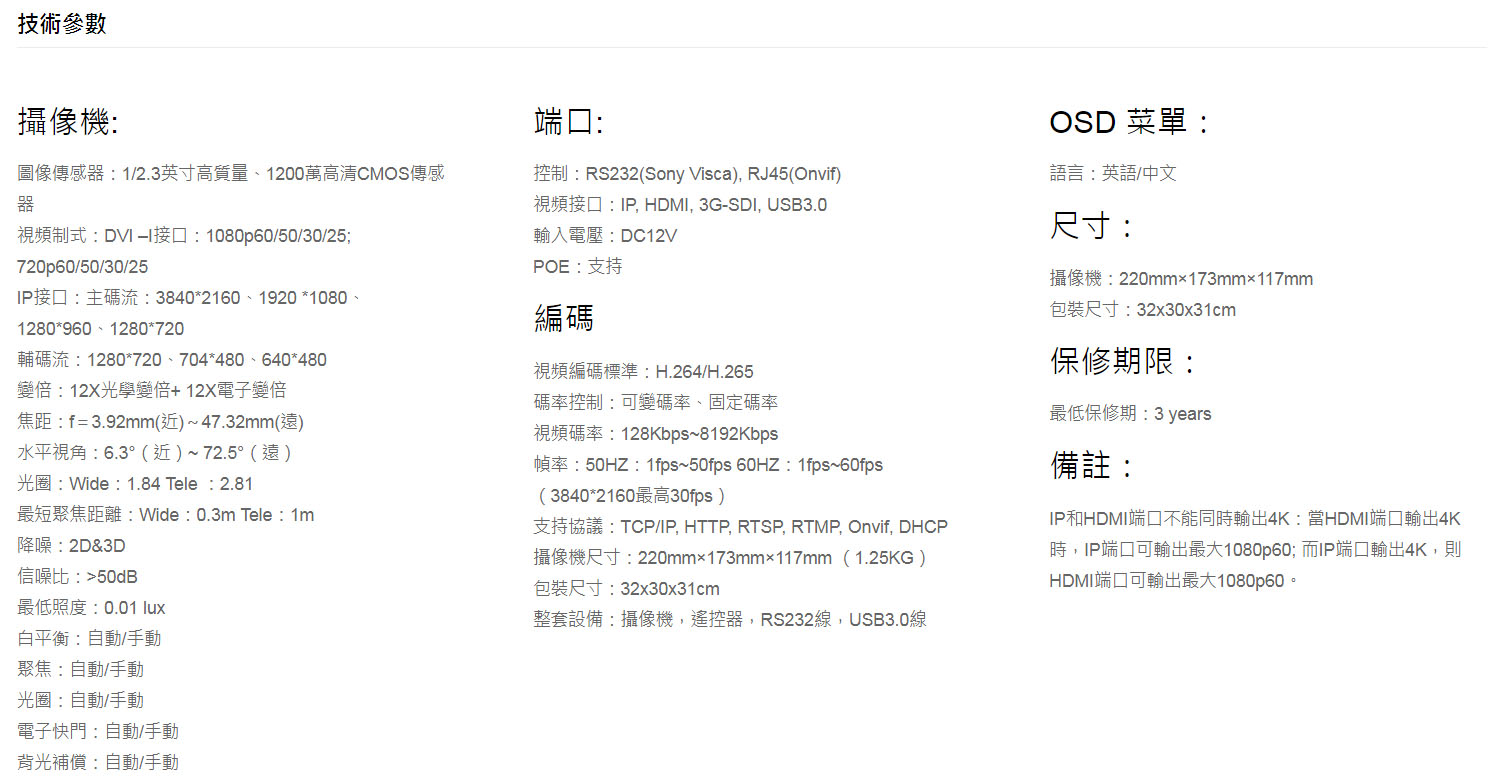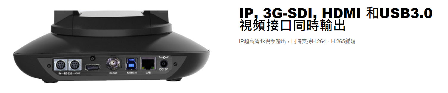 一款專業級的高清視頻會議攝像機,支持IP、DVI-I(HDMI)、3G-SDI&USB3.0同時輸出,大中型錄播系統、視頻會議、安防監控系統中的最佳選擇。