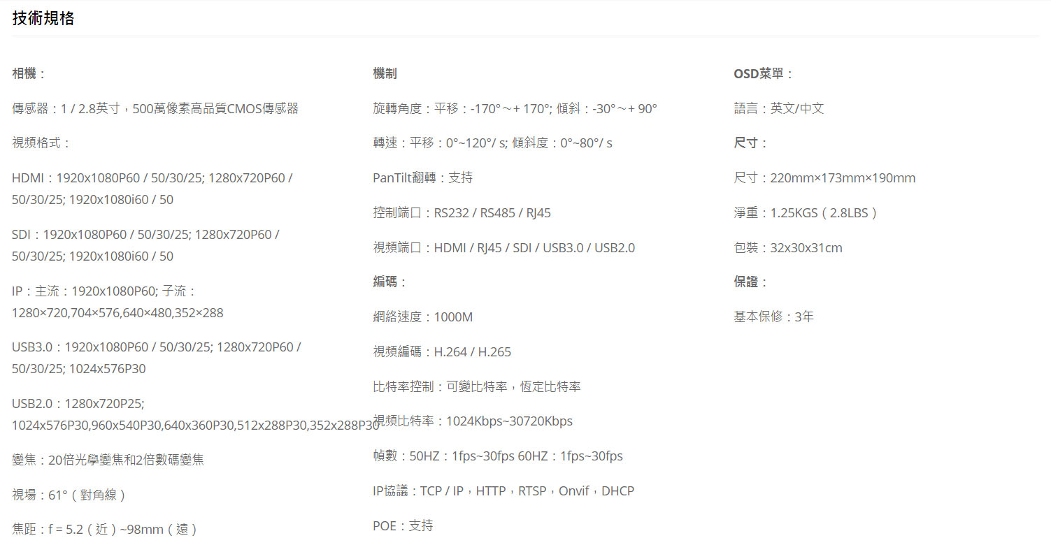 DC-300-IP-20 USB會議型攝影機-IP + 3G-SDI + HDMI + USB3.0 FHD PTZ攝像機