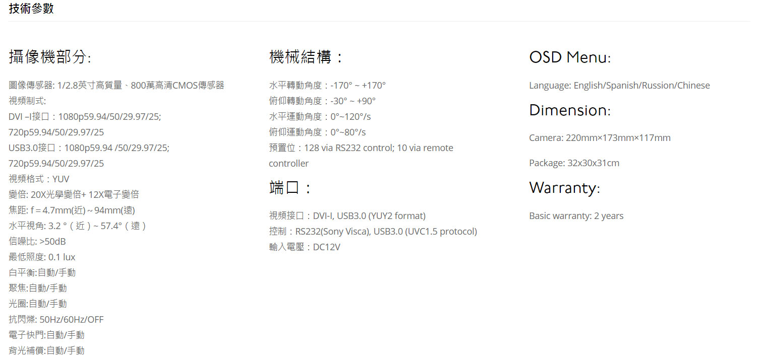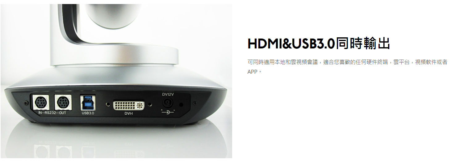 一款專業級的高清視頻會議攝像機支持USB3.0與DVI-I(HDMI) 同時輸出大中型錄播系統、視頻會議、遠程教育,遠程醫療系統中的最佳選擇。
