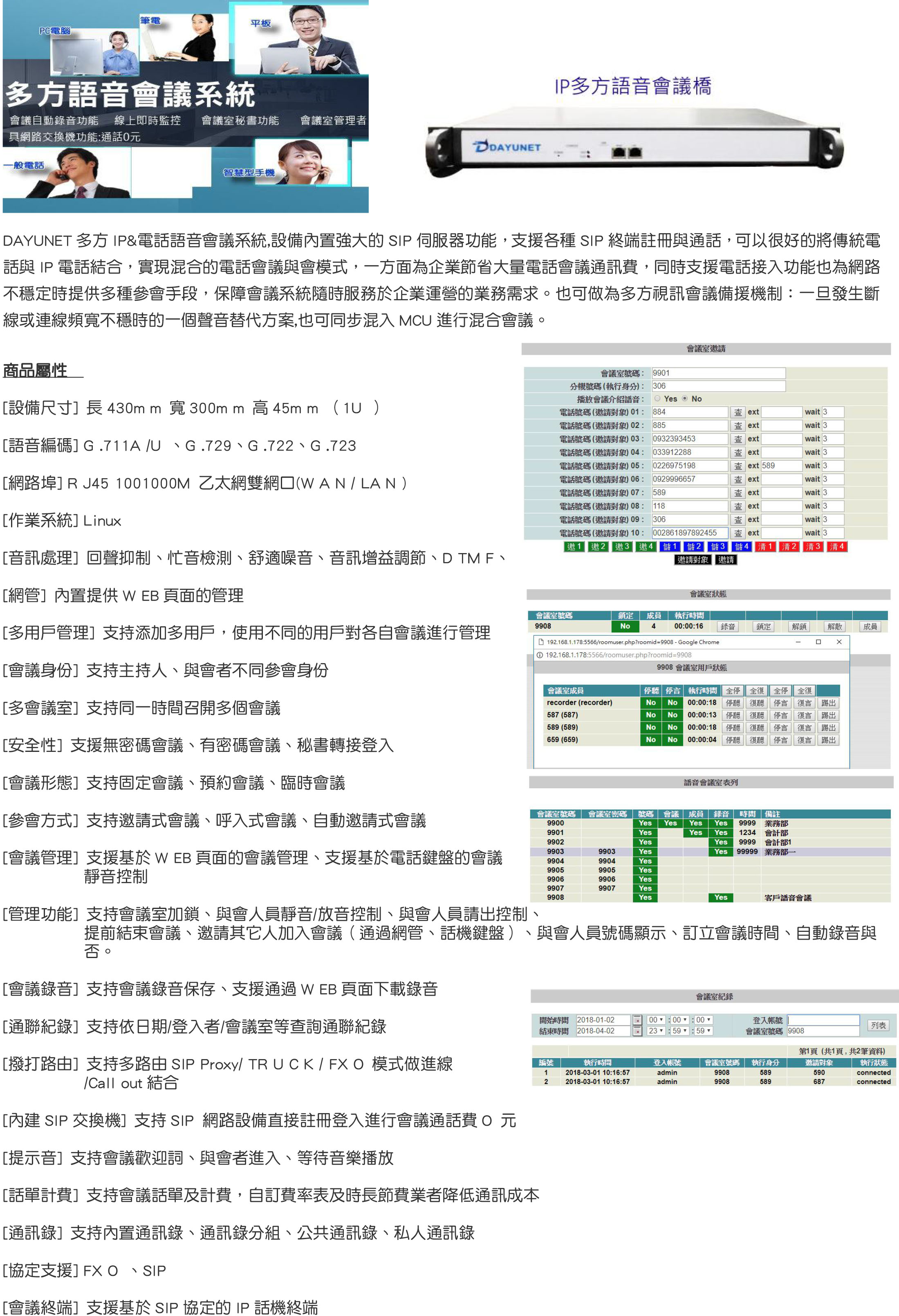內建通話錄音功能/支援多間會議室可選!WEB介面管理更輕鬆!現在買多方語音會議系統加送DID網路門號!