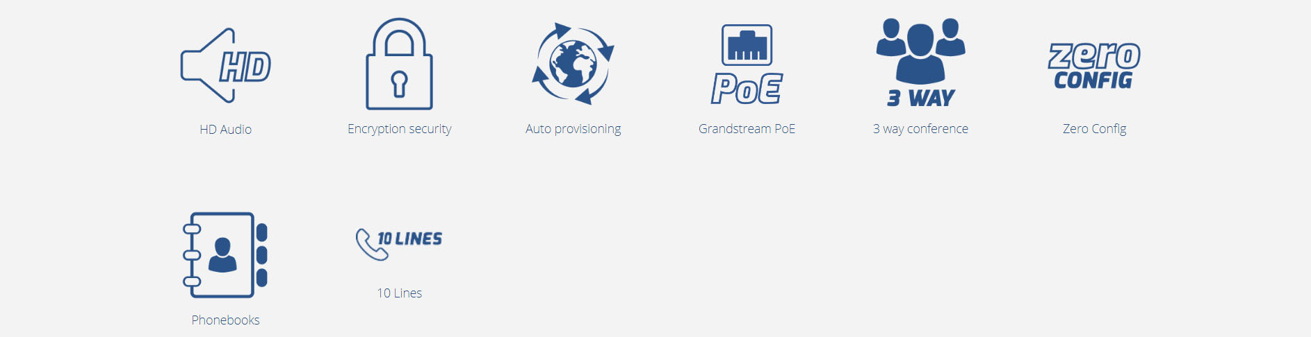 ●支援高級電話功能,包括來電轉接、呼叫轉接、呼叫等待、免打擾、消息提示、多語言提示、靈活撥號規則和更多其他功能