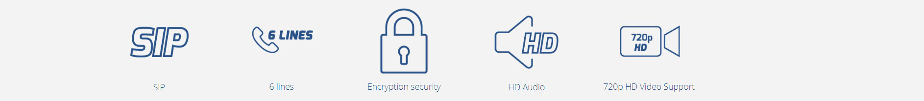 保持, 轉移, 前轉 (無條件/無應答/遇忙), 呼叫停泊/搶接, 6方語音會議, 尋呼, 靜音, BLF, 可下載通訊錄, 呼叫等待, 語音郵箱, 靈活的撥號規則, 可定制鈴音, 服務器冗餘和故障轉移 |